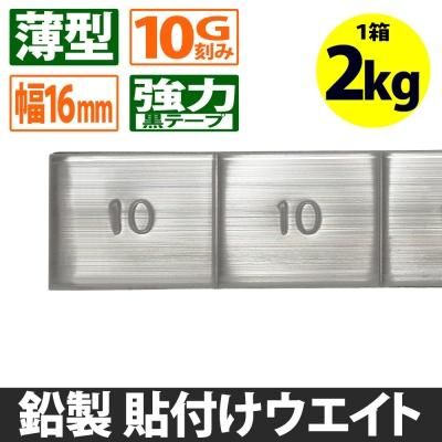 寒冷地にもオススメのアルミ用 板ウエイト 10g刻み 黒テープ 鉛製 16mm幅×3.8mm厚の薄型タイプ 1本100g(10g×10コマ連結)が1箱20本入って2kg