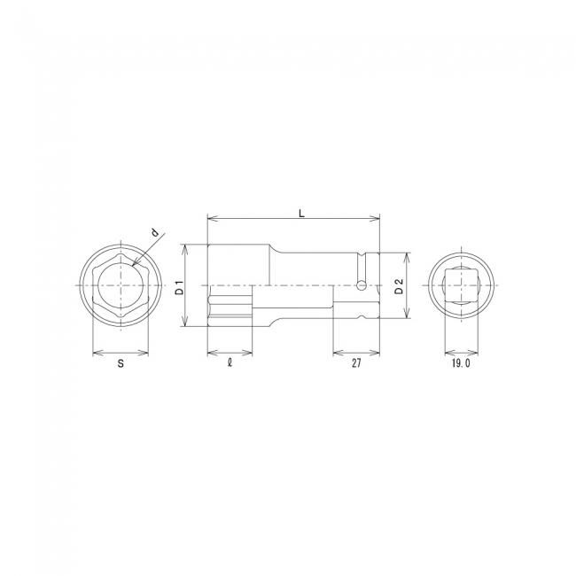 19mm角のインパクトレンチ対応の自動車用セミロングソケットです。タイヤ整備や一般産業向け ■サイズ(対辺寸法S):23mm ■6角側外径(D1):34.5mm ■6角側深さ(l):20mm ■差込角:19mm(3/4"SQ) ■全長(L):60mm ■付属ピン:6-P1 ■付属Oリング:6-O1 ■品番:3/4WA23 ■メーカー名:フラッシュツール(国産)